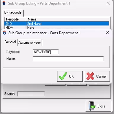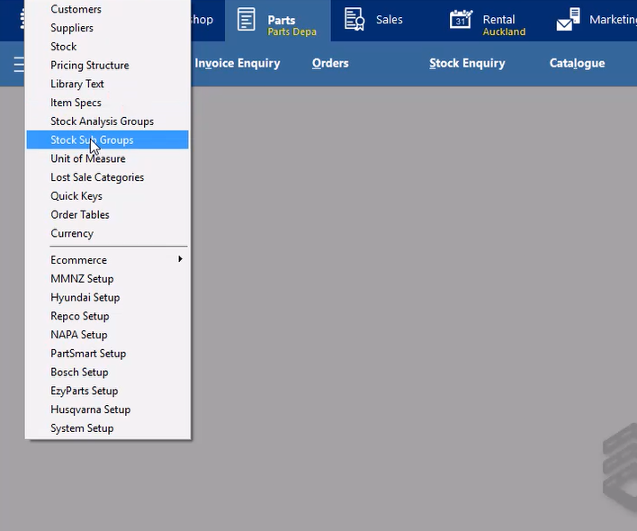 - Navigate to Parts Module > Maintenance > Stock Sub Group.