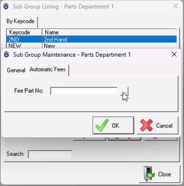 - Go to the Automatic Fees tab and select the Sundry Part fee you wish to assign and map.
