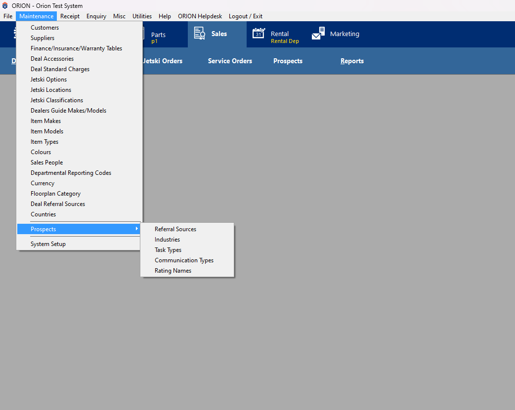 - Navigate to ORION → Sales → Maintenance → Prospect → Pipeline.