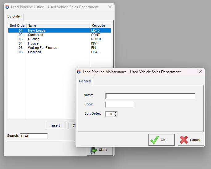 Setup Location:ORION → Sales Module → Maintenance → Prospect → Pipeline
