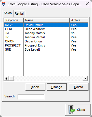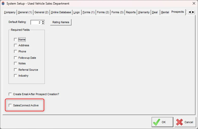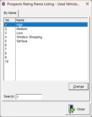 ORION → Sales Module → Maintenance → Prospect → Rating Name