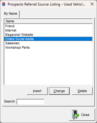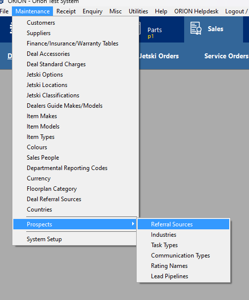 ORION → Sales Module → Maintenance → Prospect → Referral Source